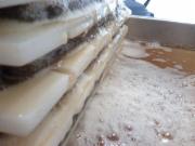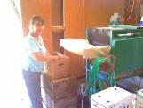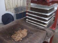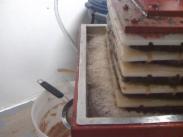After several cheese cloth forms are made we push the stack under a hydraulic press.