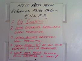 We begin with the prep work. We have been Health Department Certified since we started making cider in the early 90's. Everything we touch in the clean room is cleaned and sterilized- especially the apples.